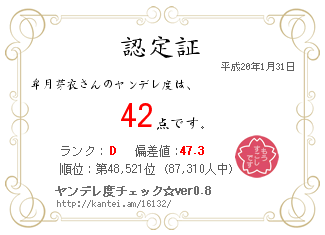 皐月芽衣さんのヤンデレ度は、 42 点です。